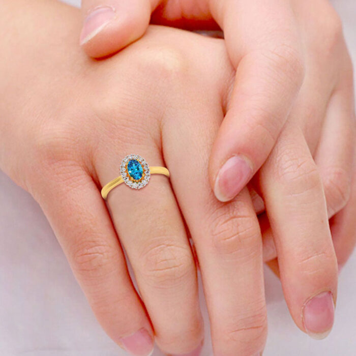 Blue Topaz Diamond Engagement Wedding Ring