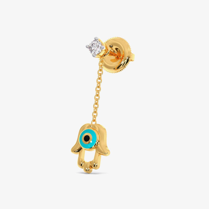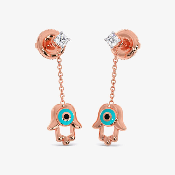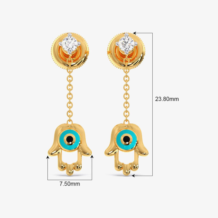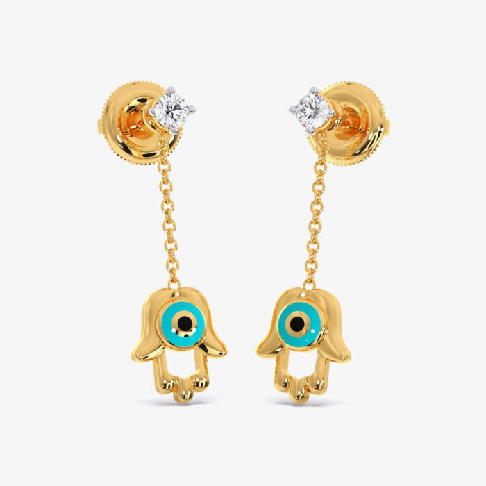 Hamsa Evil Diamond Dangling Eye Earrings
